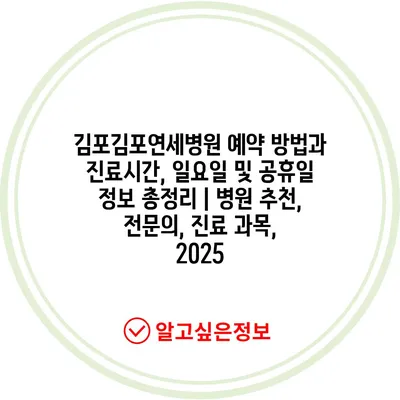 김포김포연세병원 예약 방법과 진료시간, 일요일 및 공휴일 정보 총정리 | 병원 추천, 전문의, 진료 과목, 2025