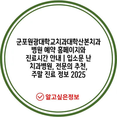 군포원광대학교치과대학산본치과병원 예약 홈페이지와 진료시간 안내 | 입소문 난 치과병원, 전문의 추천, 주말 진료 정보 2025