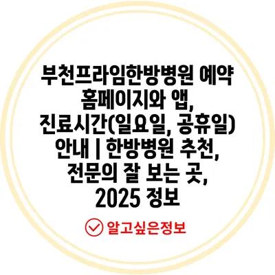 부천프라임한방병원 예약 홈페이지와 앱, 진료시간(일요일, 공휴일) 안내 | 한방병원 추천, 전문의 잘 보는 곳, 2025 정보