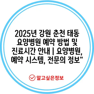 2025년 강원 춘천 태동 요양병원 예약 방법 및 진료시간 안내 | 요양병원, 예약 시스템, 전문의 정보”