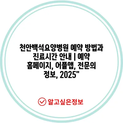 천안백석요양병원 예약 방법과 진료시간 안내 | 예약 홈페이지, 어플앱, 전문의 정보, 2025″