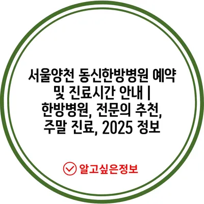 서울양천 동신한방병원 예약 및 진료시간 안내 | 한방병원, 전문의 추천, 주말 진료, 2025 정보