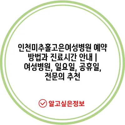 인천미추홀고은여성병원 예약 방법과 진료시간 안내 | 여성병원, 일요일, 공휴일, 전문의 추천
