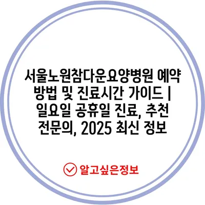 서울노원참다운요양병원 예약 방법 및 진료시간 가이드 | 일요일 공휴일 진료, 추천 전문의, 2025 최신 정보