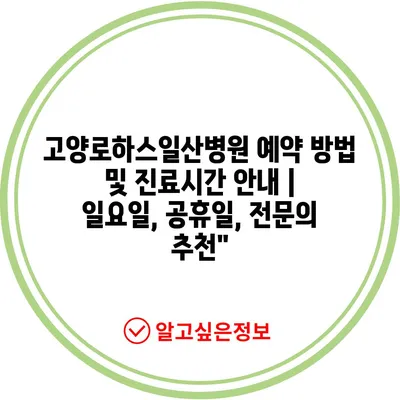 고양로하스일산병원 예약 방법 및 진료시간 안내 | 일요일, 공휴일, 전문의 추천”