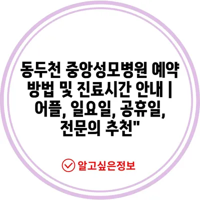 동두천 중앙성모병원 예약 방법 및 진료시간 안내 | 어플, 일요일, 공휴일, 전문의 추천”