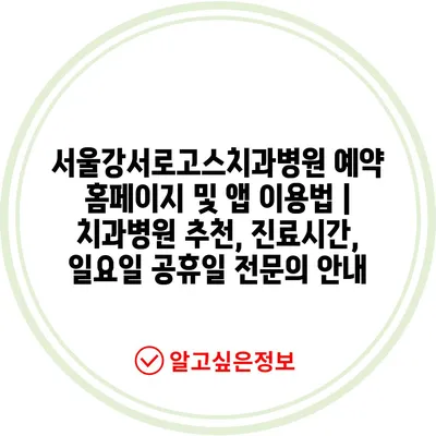 서울강서로고스치과병원 예약 홈페이지 및 앱 이용법 | 치과병원 추천, 진료시간, 일요일 공휴일 전문의 안내