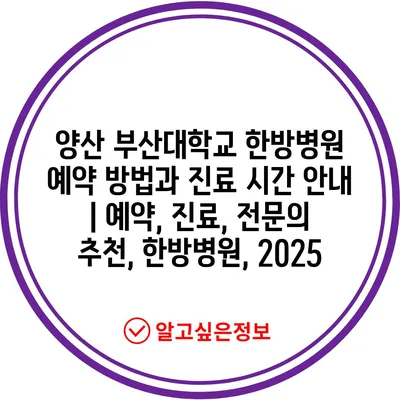 양산 부산대학교 한방병원 예약 방법과 진료 시간 안내 | 예약, 진료, 전문의 추천, 한방병원, 2025