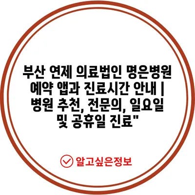 부산 연제 의료법인 명은병원 예약 앱과 진료시간 안내 | 병원 추천, 전문의, 일요일 및 공휴일 진료”