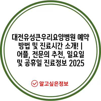 대전유성큰우리요양병원 예약 방법 및 진료시간 소개! | 어플, 전문의 추천, 일요일 및 공휴일 진료정보 2025