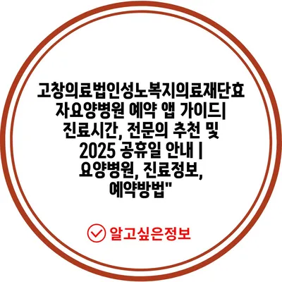 고창의료법인성노복지의료재단효자요양병원 예약 앱 가이드| 진료시간, 전문의 추천 및 2025 공휴일 안내 | 요양병원, 진료정보, 예약방법”