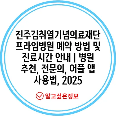 진주김취열기념의료재단 프라임병원 예약 방법 및 진료시간 안내 | 병원 추천, 전문의, 어플 앱 사용법, 2025