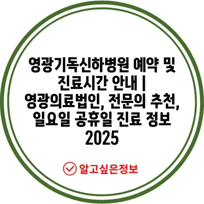 영광기독신하병원 예약 및 진료시간 안내 | 영광의료법인, 전문의 추천, 일요일 공휴일 진료 정보 2025