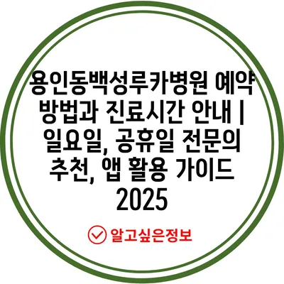 용인동백성루카병원 예약 방법과 진료시간 안내 | 일요일, 공휴일 전문의 추천, 앱 활용 가이드 2025