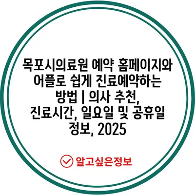 목포시의료원 예약 홈페이지와 어플로 쉽게 진료예약하는 방법 | 의사 추천, 진료시간, 일요일 및 공휴일 정보, 2025